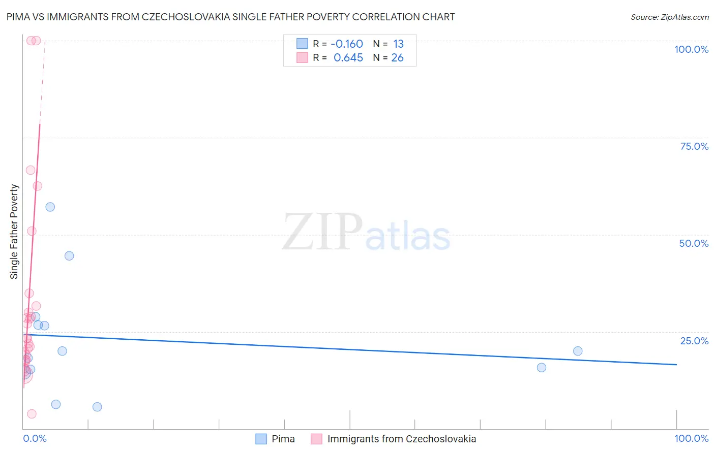 Pima vs Immigrants from Czechoslovakia Single Father Poverty Correlation Chart