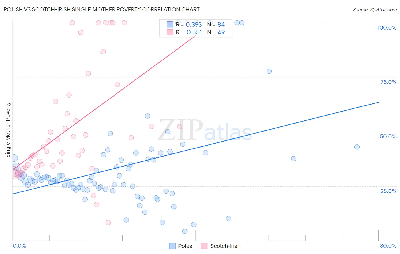Polish vs Scotch-Irish Single Mother Poverty Correlation Chart