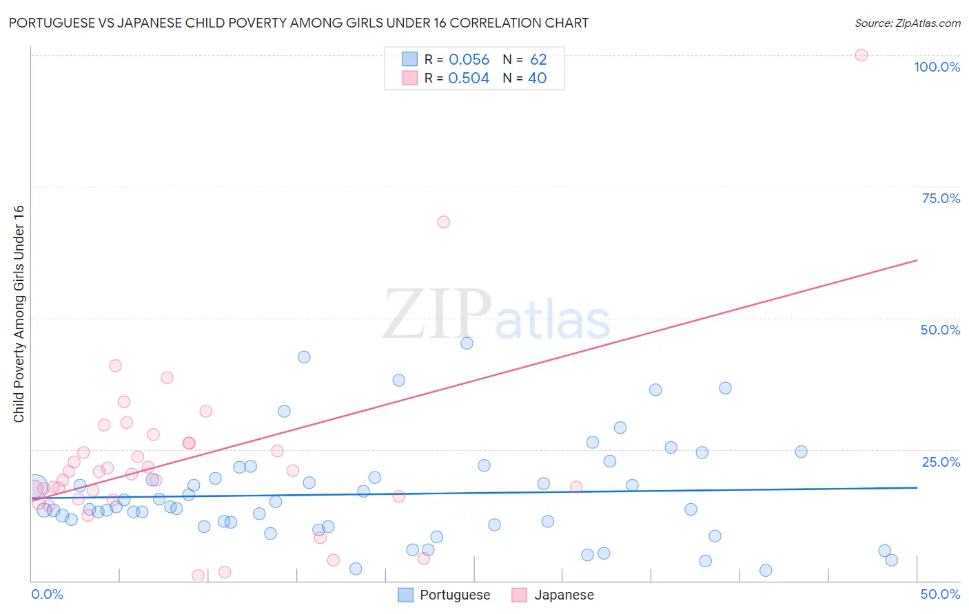 Portuguese vs Japanese Child Poverty Among Girls Under 16 Correlation Chart