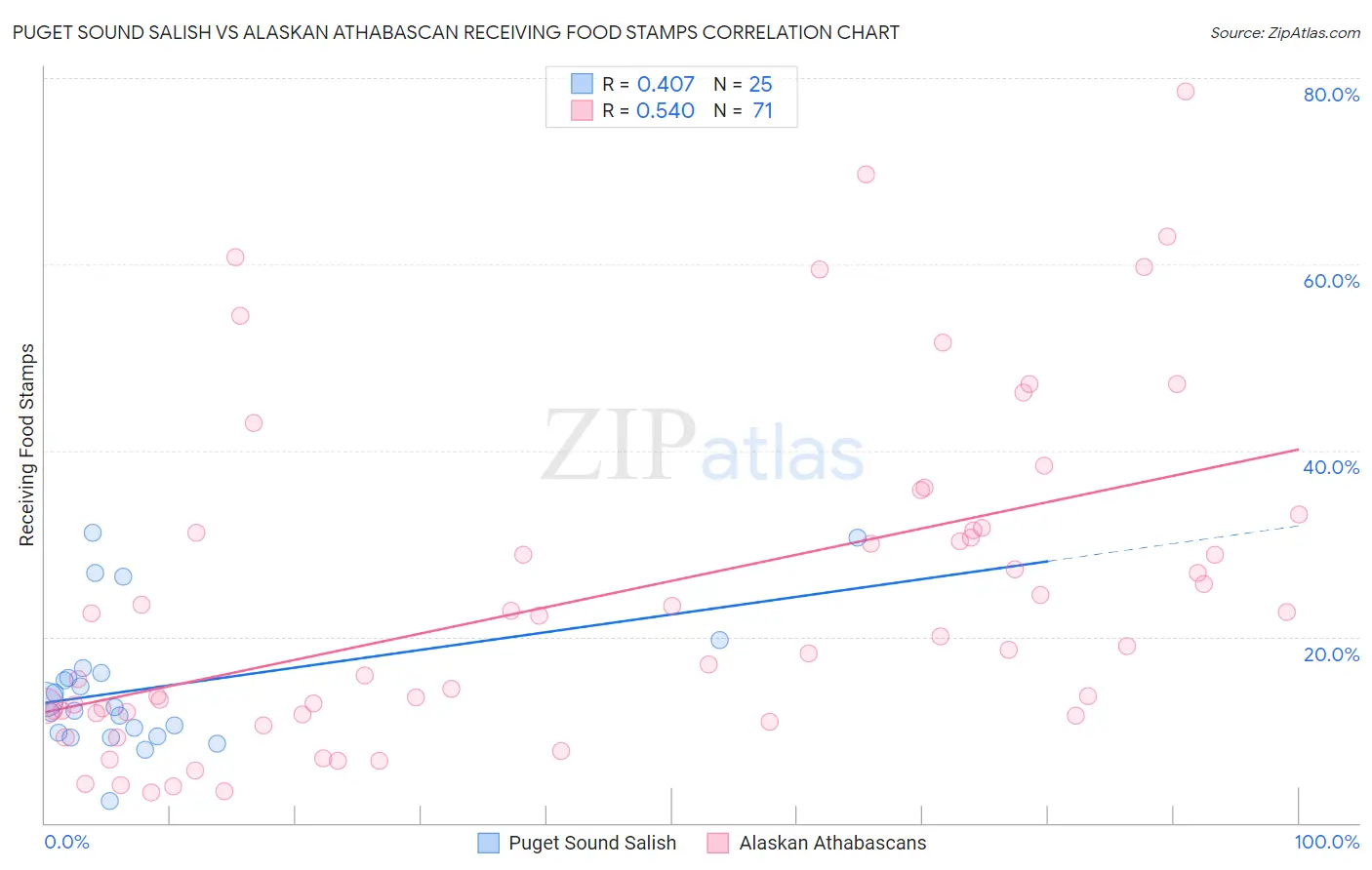 Puget Sound Salish vs Alaskan Athabascan Receiving Food Stamps Correlation Chart