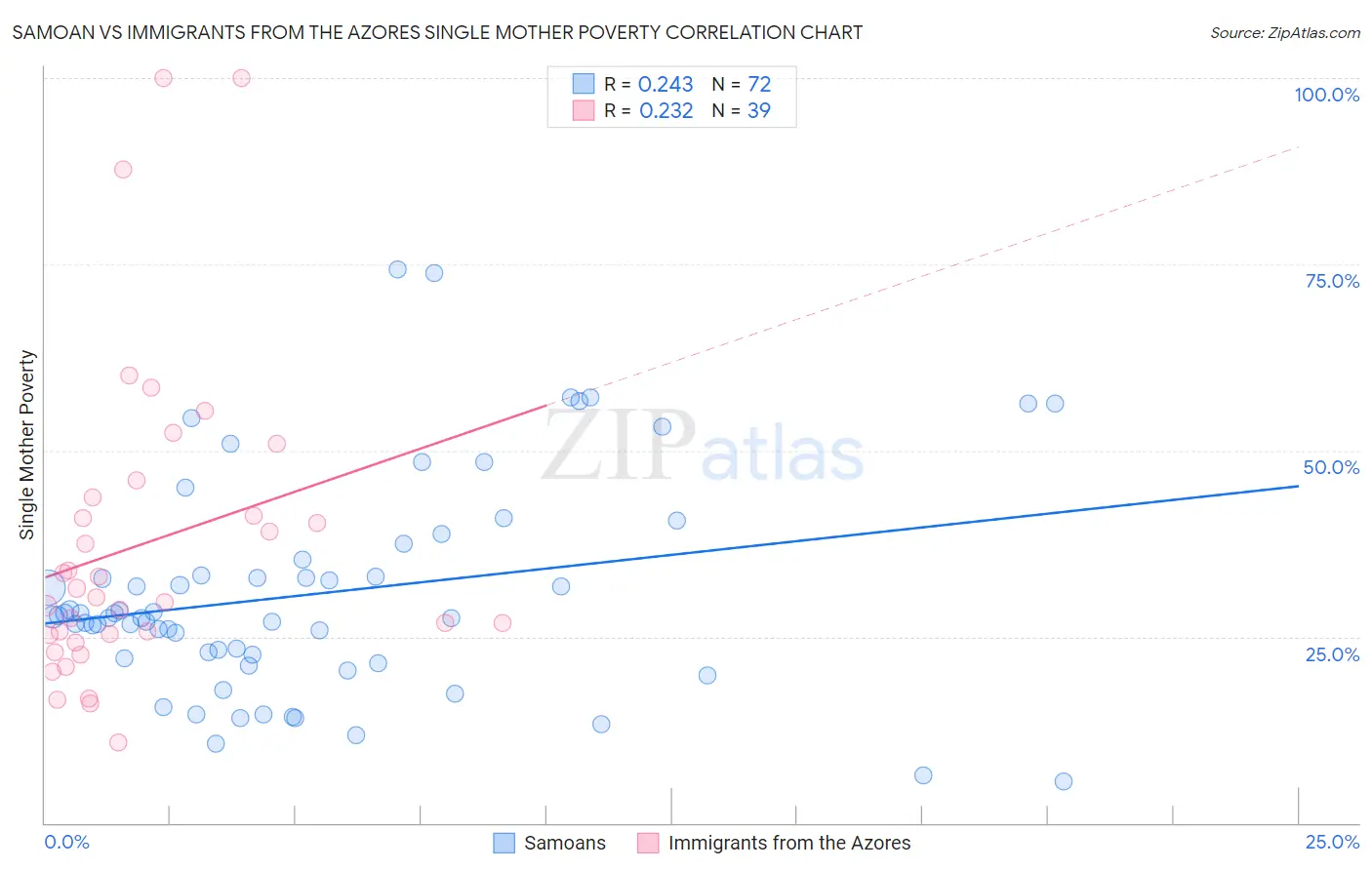 Samoan vs Immigrants from the Azores Single Mother Poverty Correlation Chart