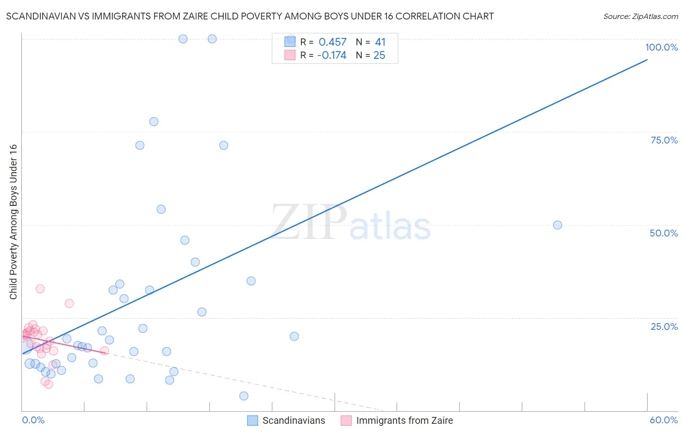 Scandinavian vs Immigrants from Zaire Child Poverty Among Boys Under 16