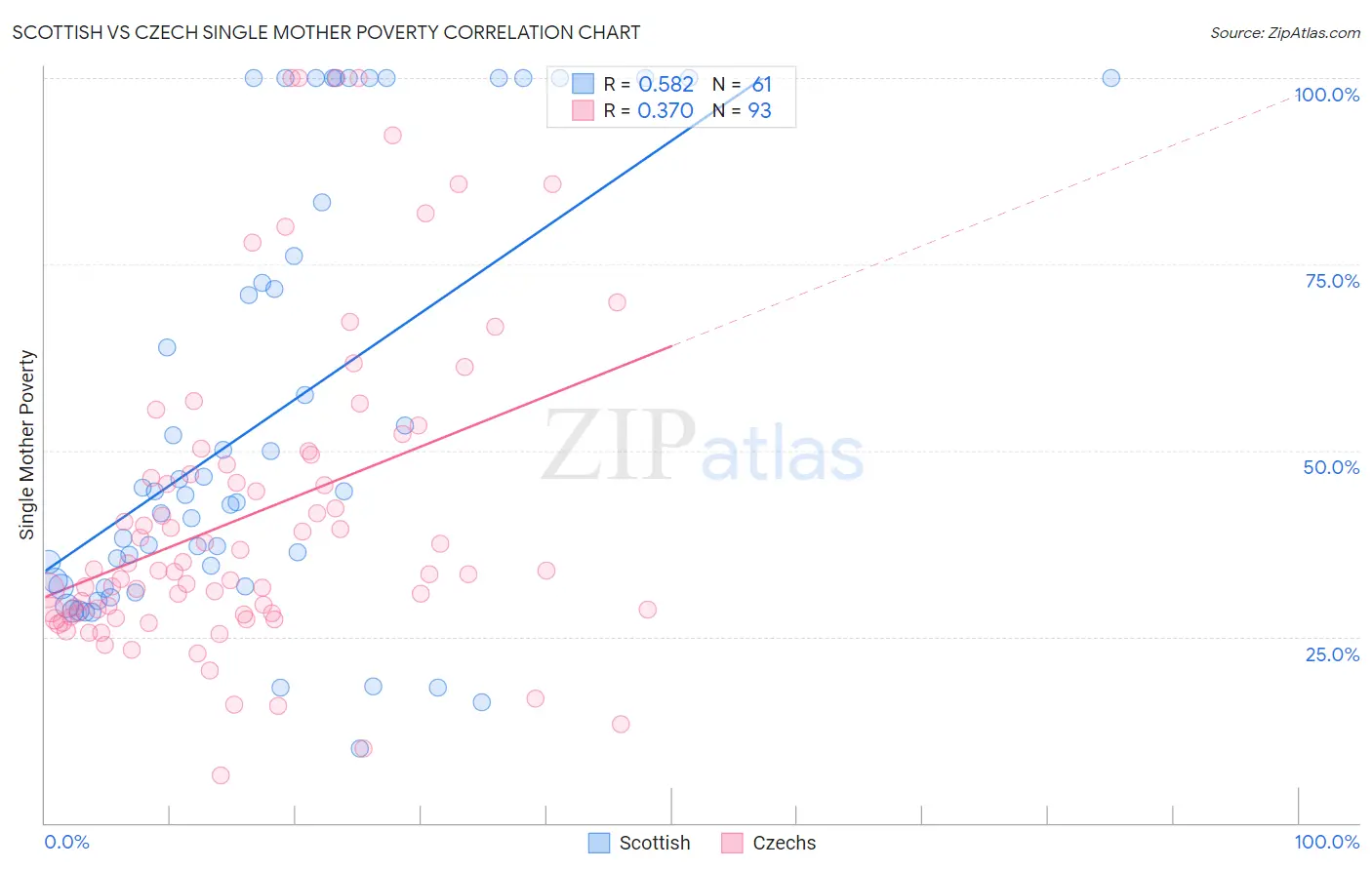 Scottish vs Czech Single Mother Poverty Correlation Chart