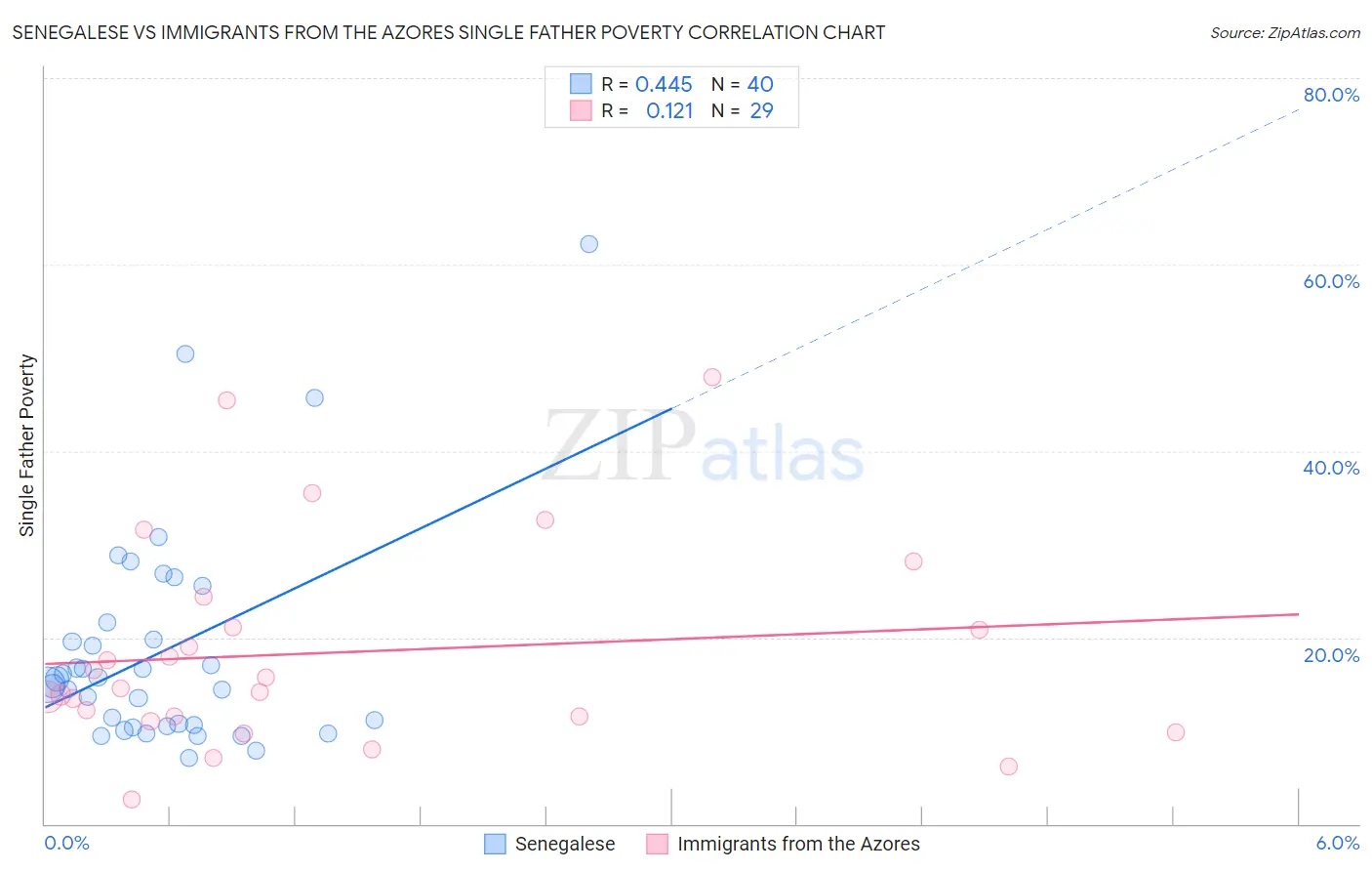 Senegalese vs Immigrants from the Azores Single Father Poverty Correlation Chart