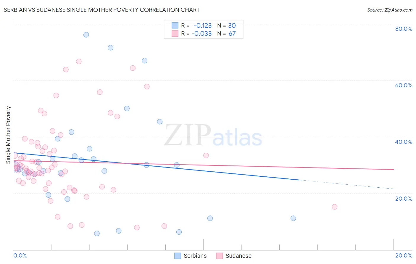 Serbian vs Sudanese Single Mother Poverty Correlation Chart