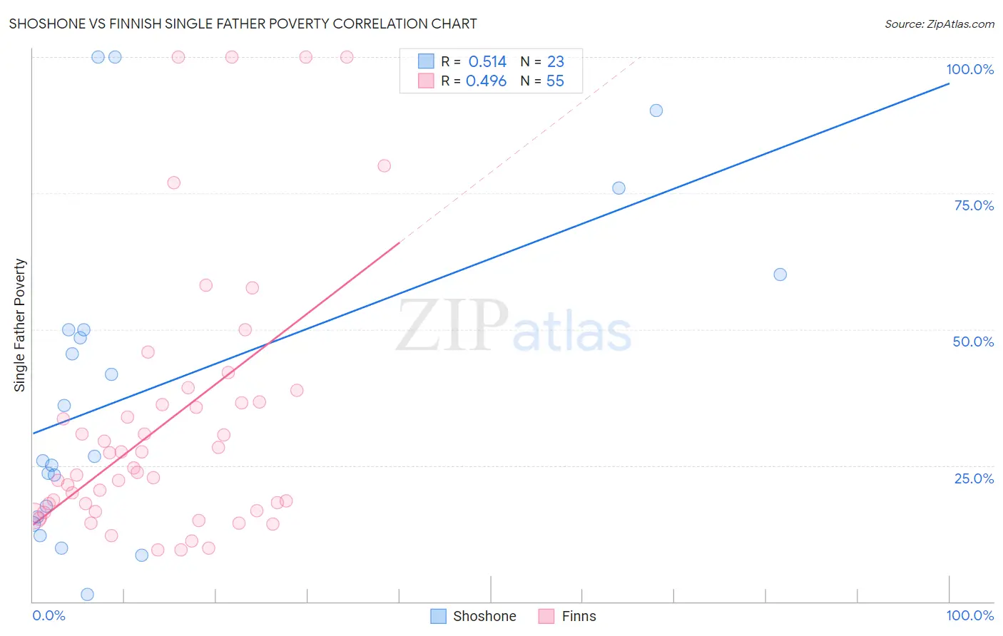 Shoshone vs Finnish Single Father Poverty Correlation Chart