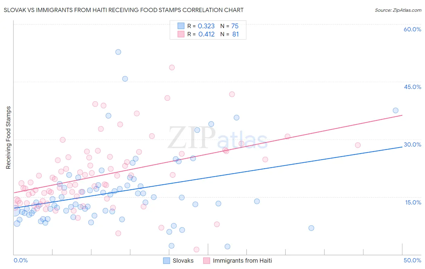 Slovak vs Immigrants from Haiti Receiving Food Stamps Correlation Chart