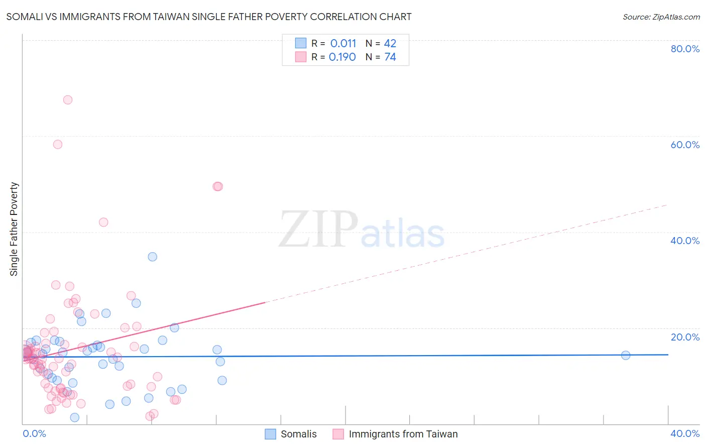 Somali vs Immigrants from Taiwan Single Father Poverty Correlation Chart