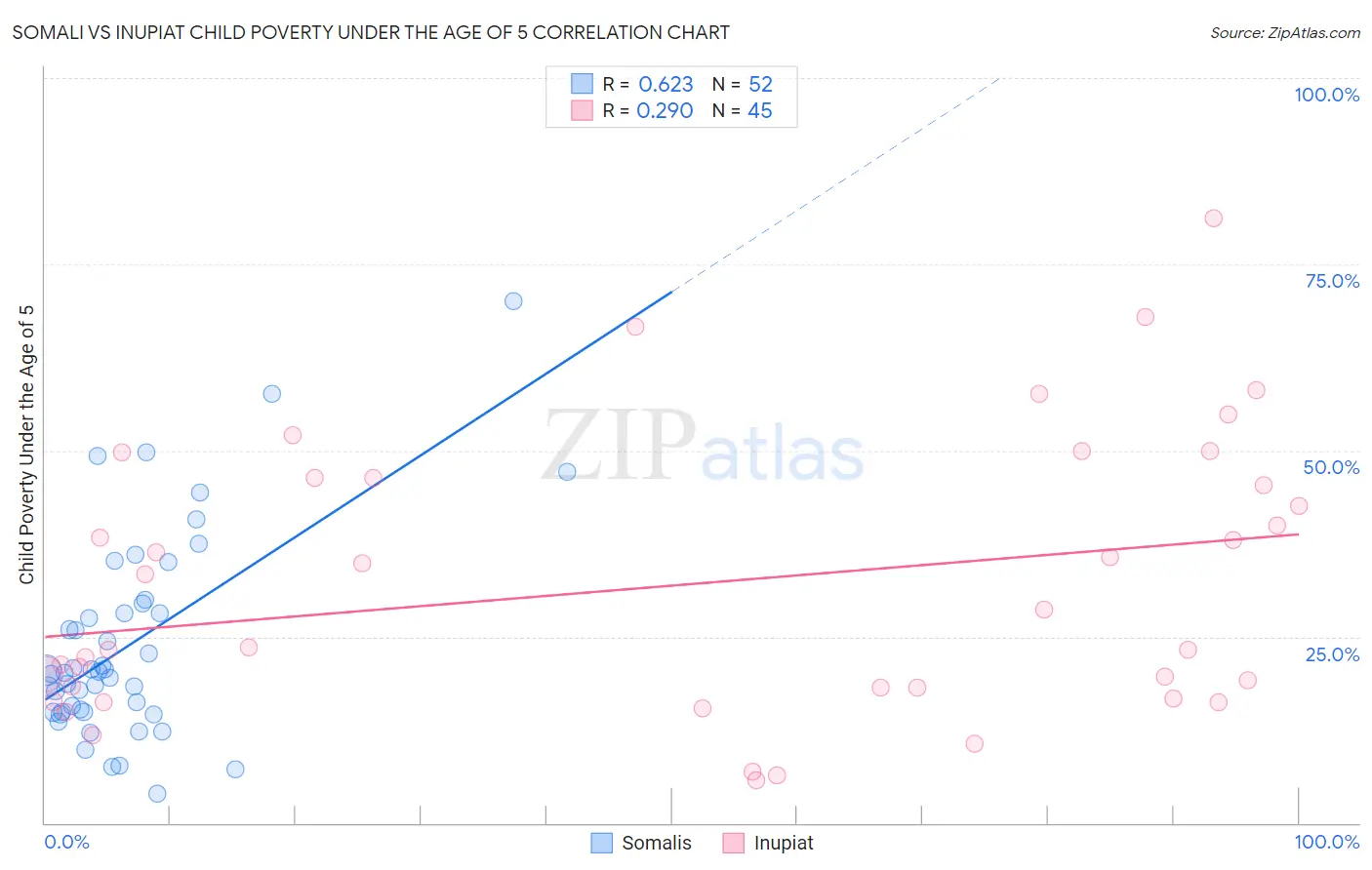 Somali vs Inupiat Child Poverty Under the Age of 5 Correlation Chart