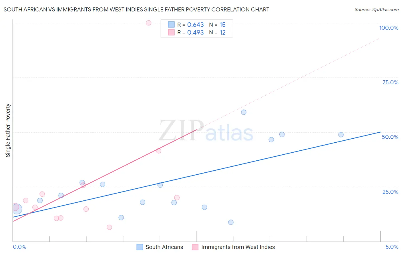 South African vs Immigrants from West Indies Single Father Poverty Correlation Chart