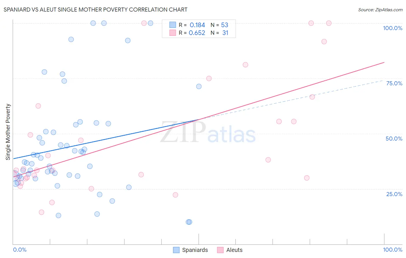 Spaniard vs Aleut Single Mother Poverty Correlation Chart
