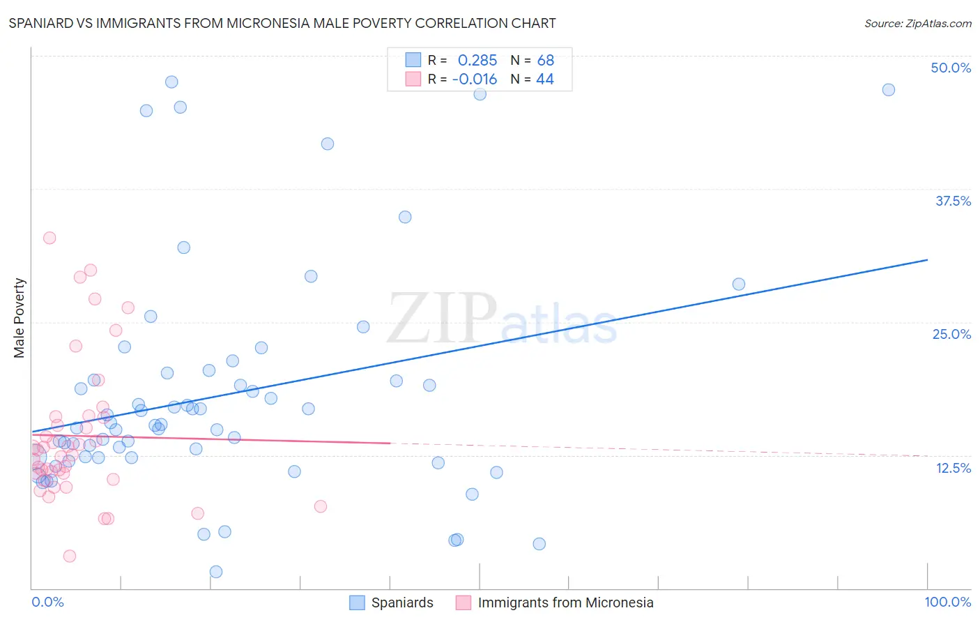 Spaniard vs Immigrants from Micronesia Male Poverty Correlation Chart