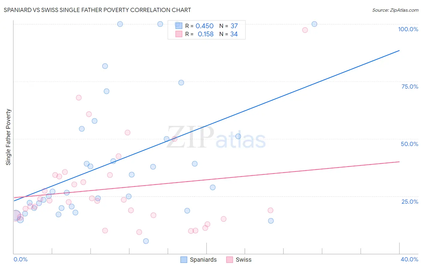 Spaniard vs Swiss Single Father Poverty Correlation Chart