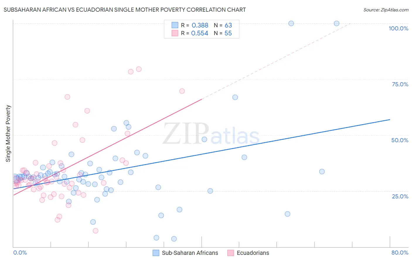 Subsaharan African vs Ecuadorian Single Mother Poverty Correlation Chart