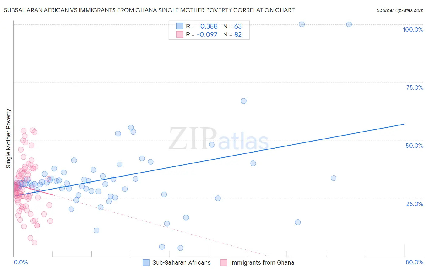 Subsaharan African vs Immigrants from Ghana Single Mother Poverty Correlation Chart