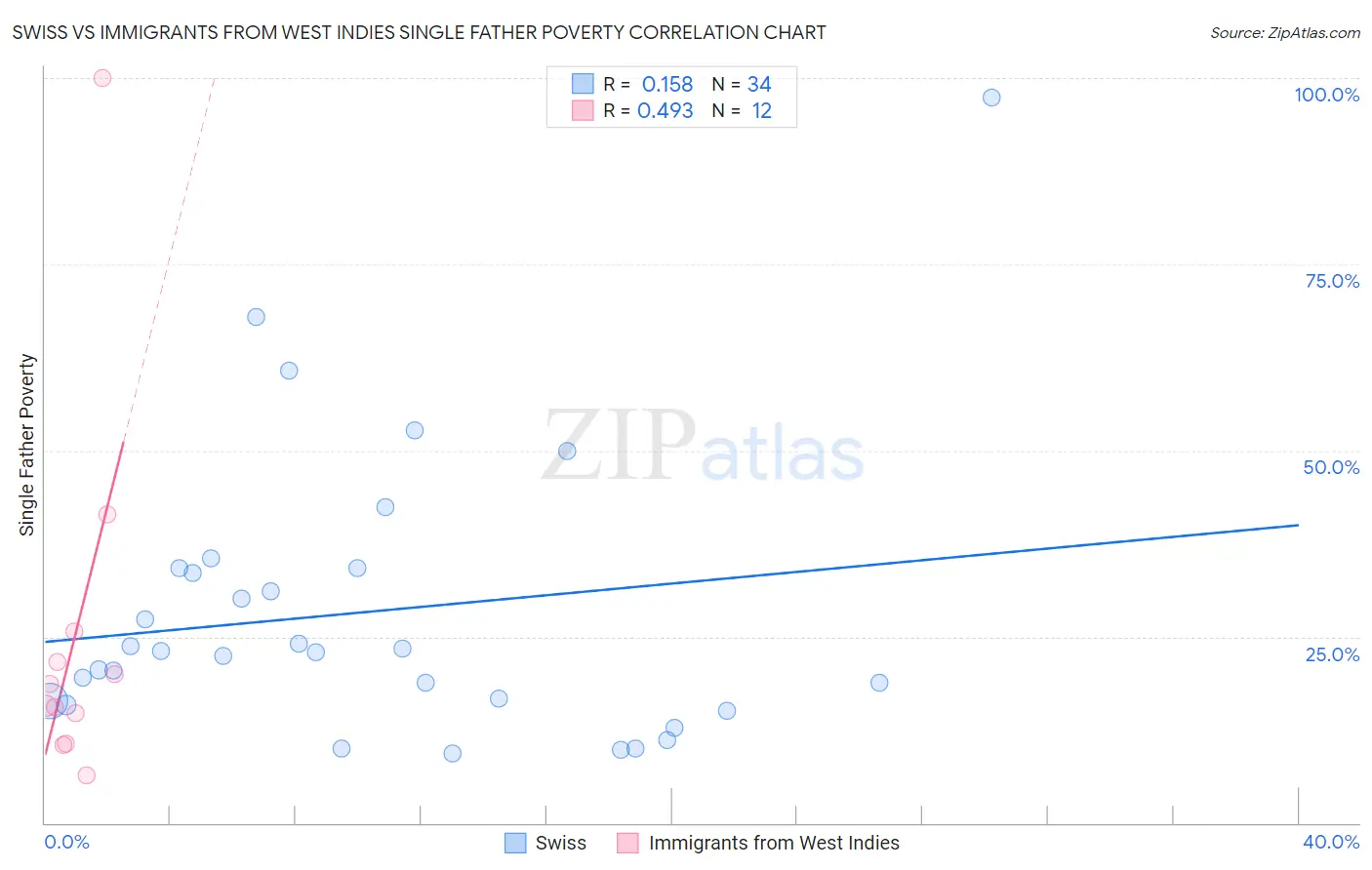 Swiss vs Immigrants from West Indies Single Father Poverty Correlation Chart