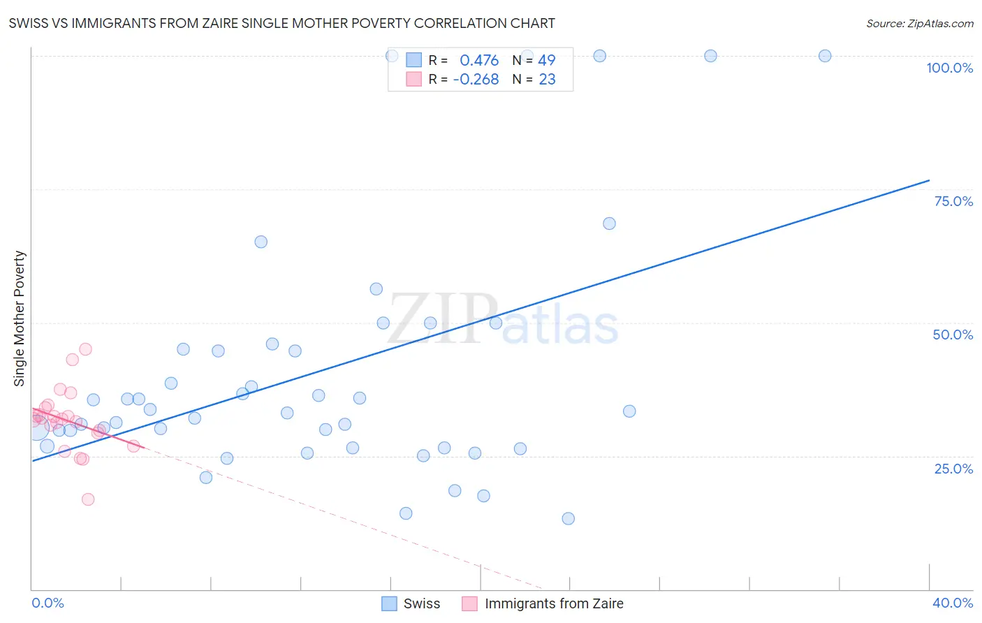 Swiss vs Immigrants from Zaire Single Mother Poverty Correlation Chart