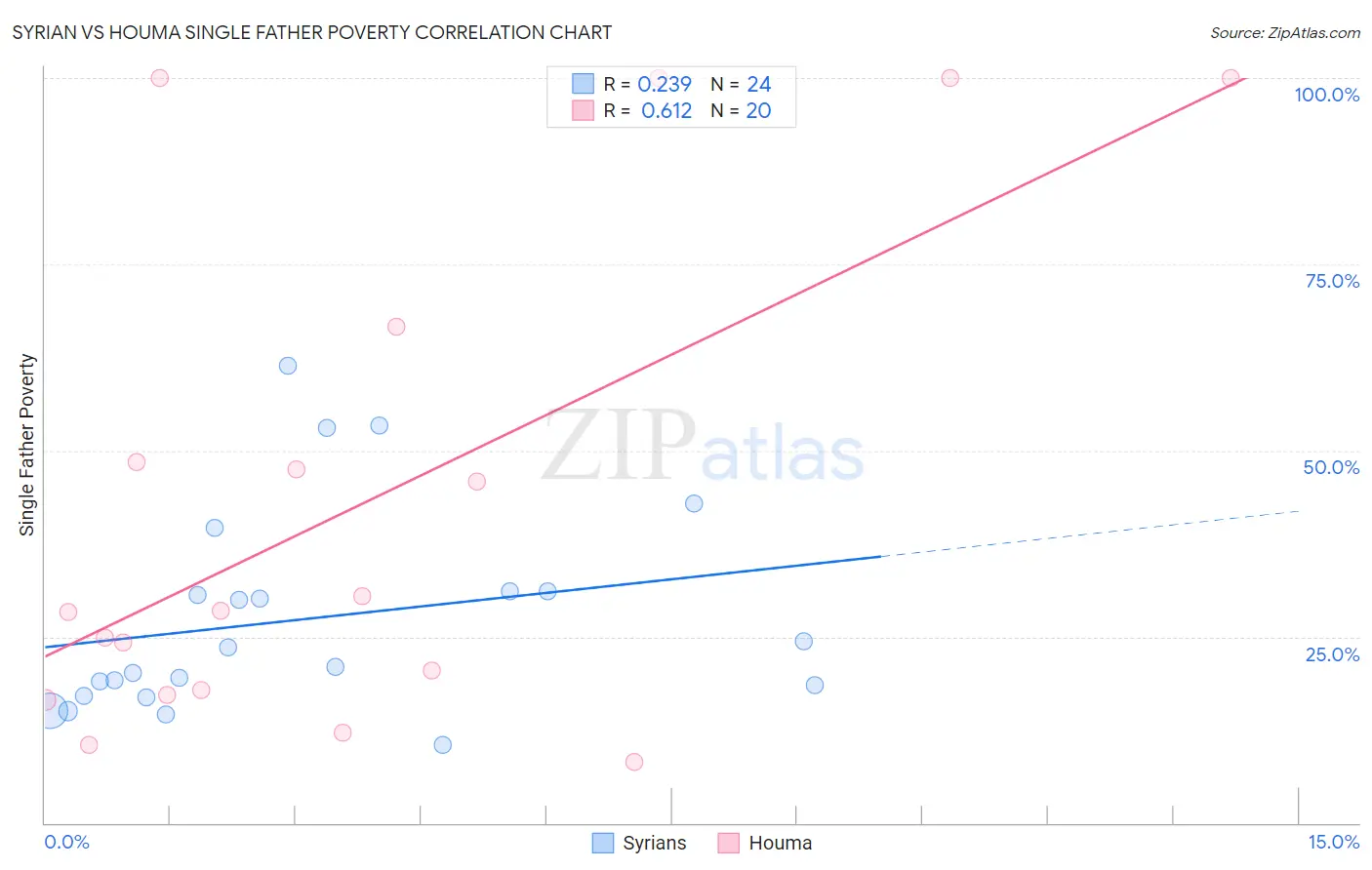 Syrian vs Houma Single Father Poverty Correlation Chart