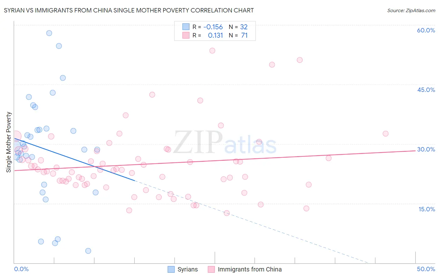 Syrian vs Immigrants from China Single Mother Poverty Correlation Chart