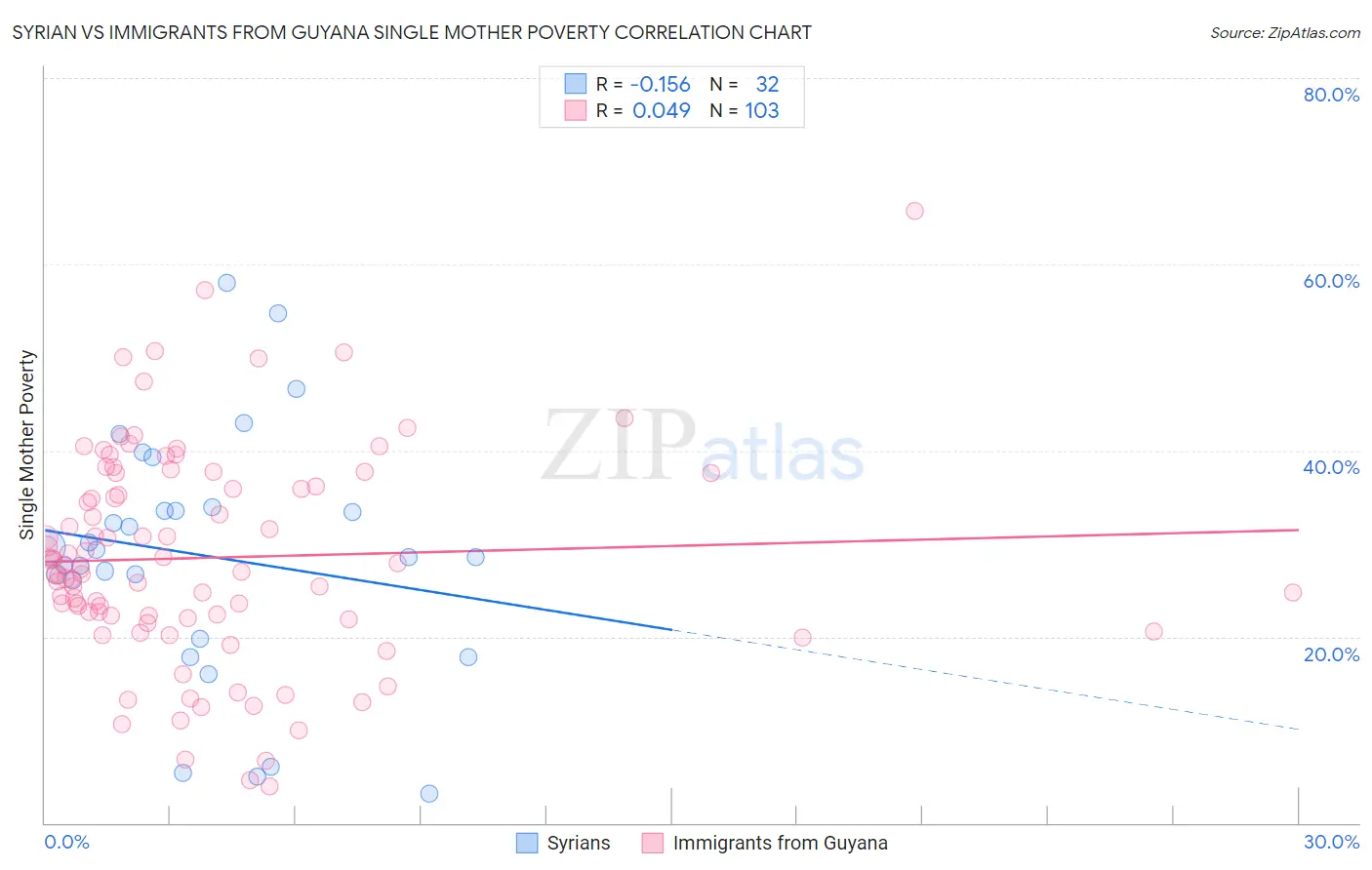 Syrian vs Immigrants from Guyana Single Mother Poverty Correlation Chart