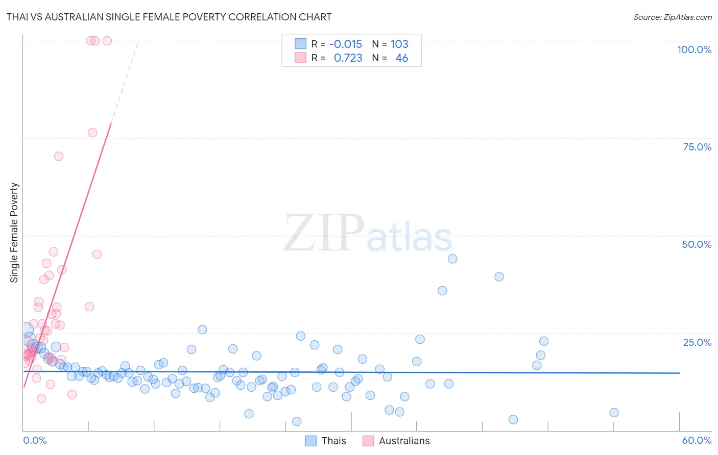 Thai vs Australian Single Female Poverty Correlation Chart