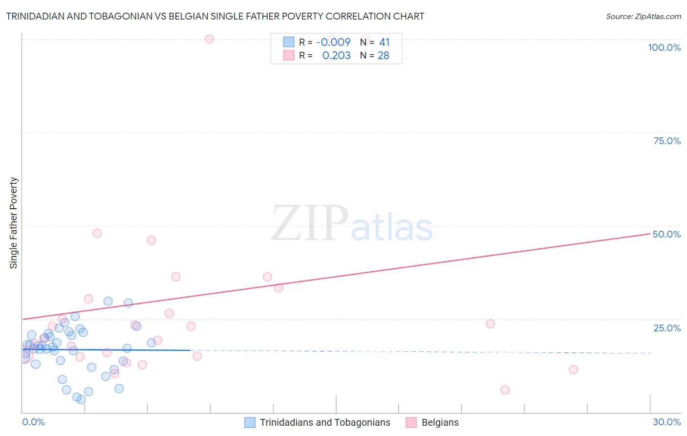 Trinidadian and Tobagonian vs Belgian Single Father Poverty Correlation Chart