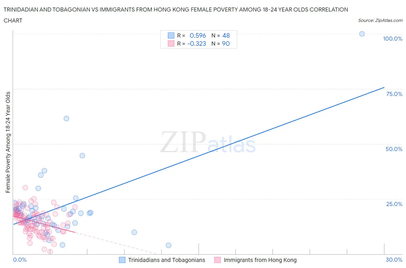 Trinidadian and Tobagonian vs Immigrants from Hong Kong Female Poverty Among 18-24 Year Olds Correlation Chart