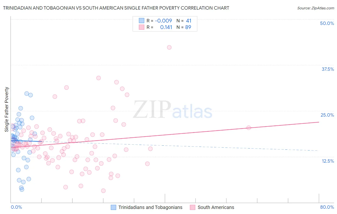 Trinidadian and Tobagonian vs South American Single Father Poverty Correlation Chart