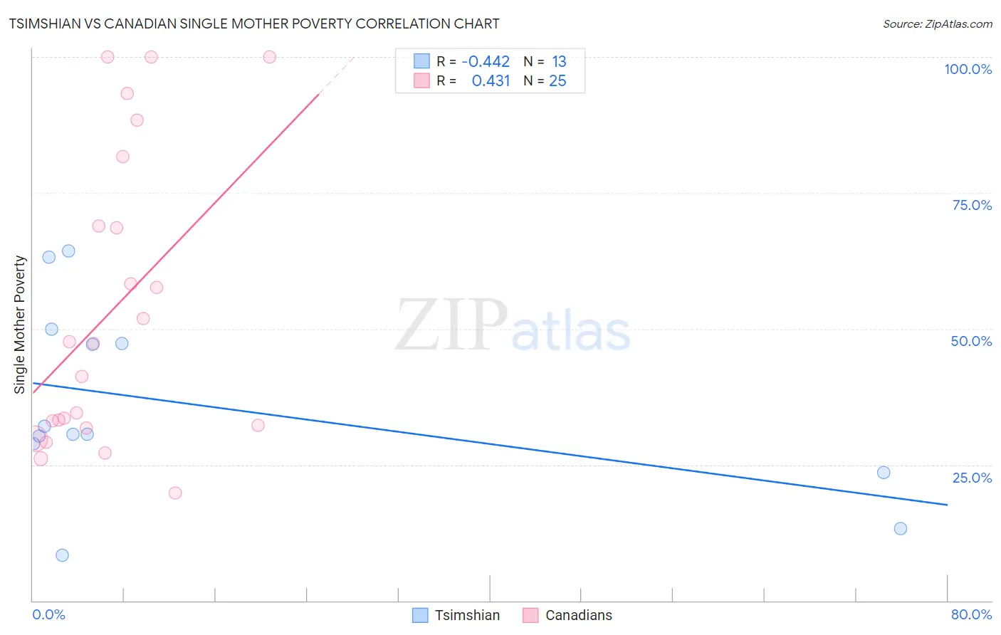 Tsimshian vs Canadian Single Mother Poverty Correlation Chart