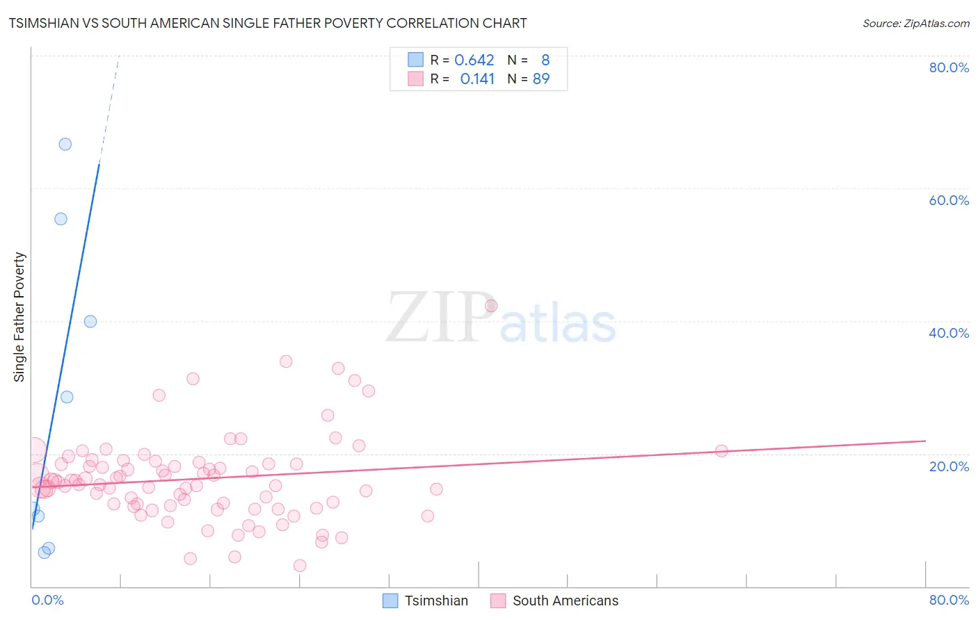 Tsimshian vs South American Single Father Poverty Correlation Chart