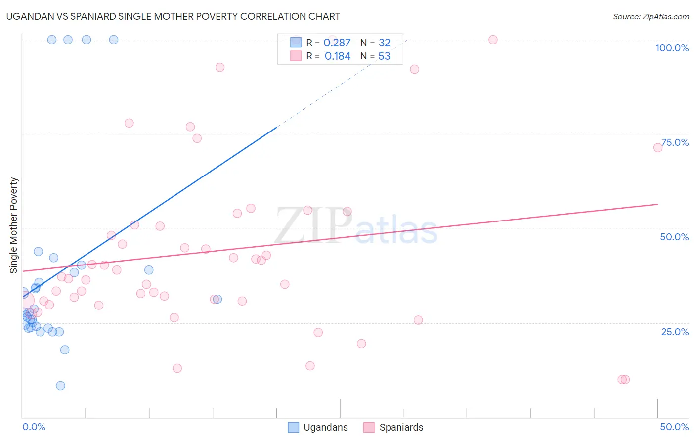 Ugandan vs Spaniard Single Mother Poverty Correlation Chart
