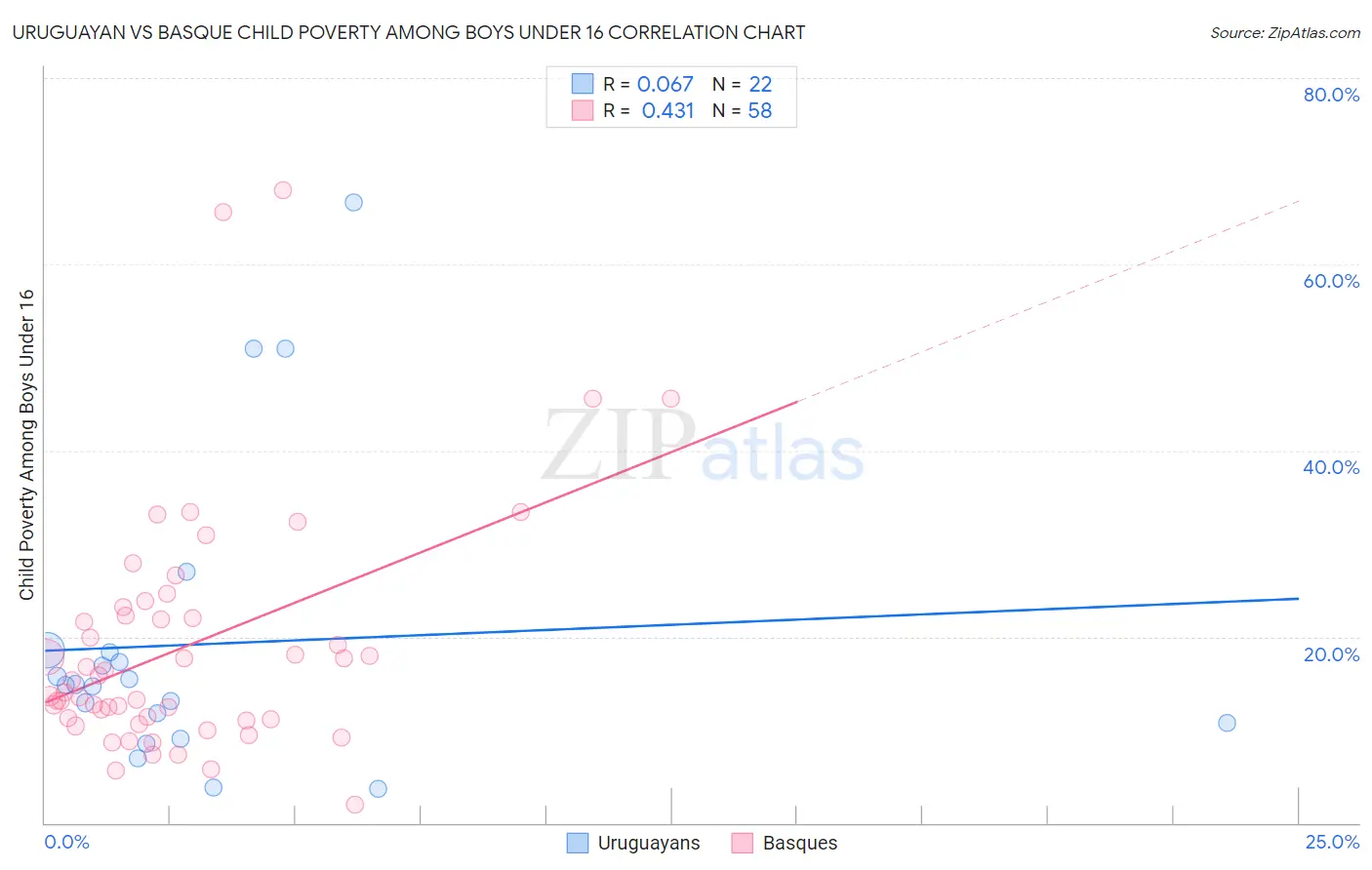 Uruguayan vs Basque Child Poverty Among Boys Under 16 Correlation Chart