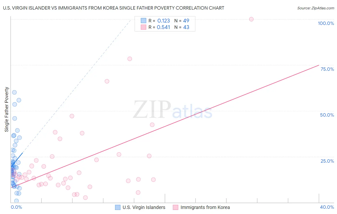 U.S. Virgin Islander vs Immigrants from Korea Single Father Poverty Correlation Chart