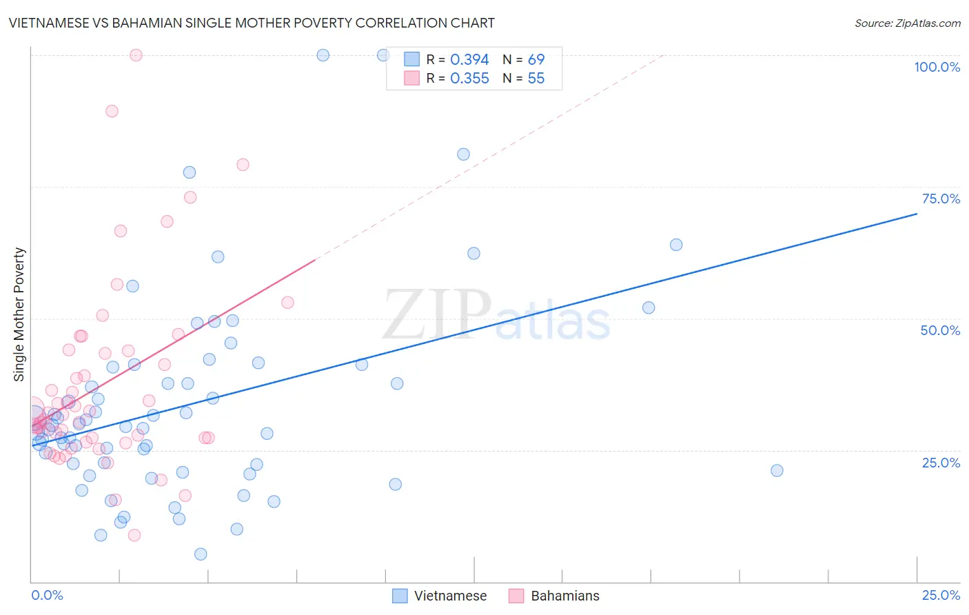 Vietnamese vs Bahamian Single Mother Poverty Correlation Chart