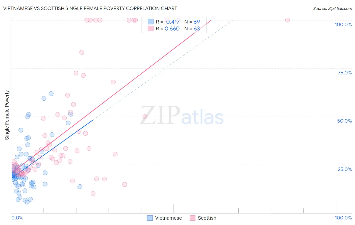 Vietnamese vs Scottish Single Female Poverty Correlation Chart