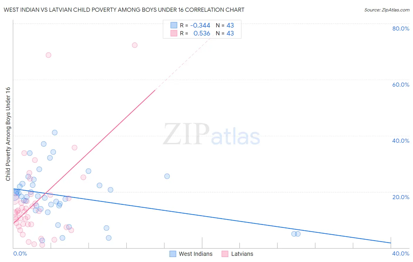 West Indian vs Latvian Child Poverty Among Boys Under 16 Correlation Chart