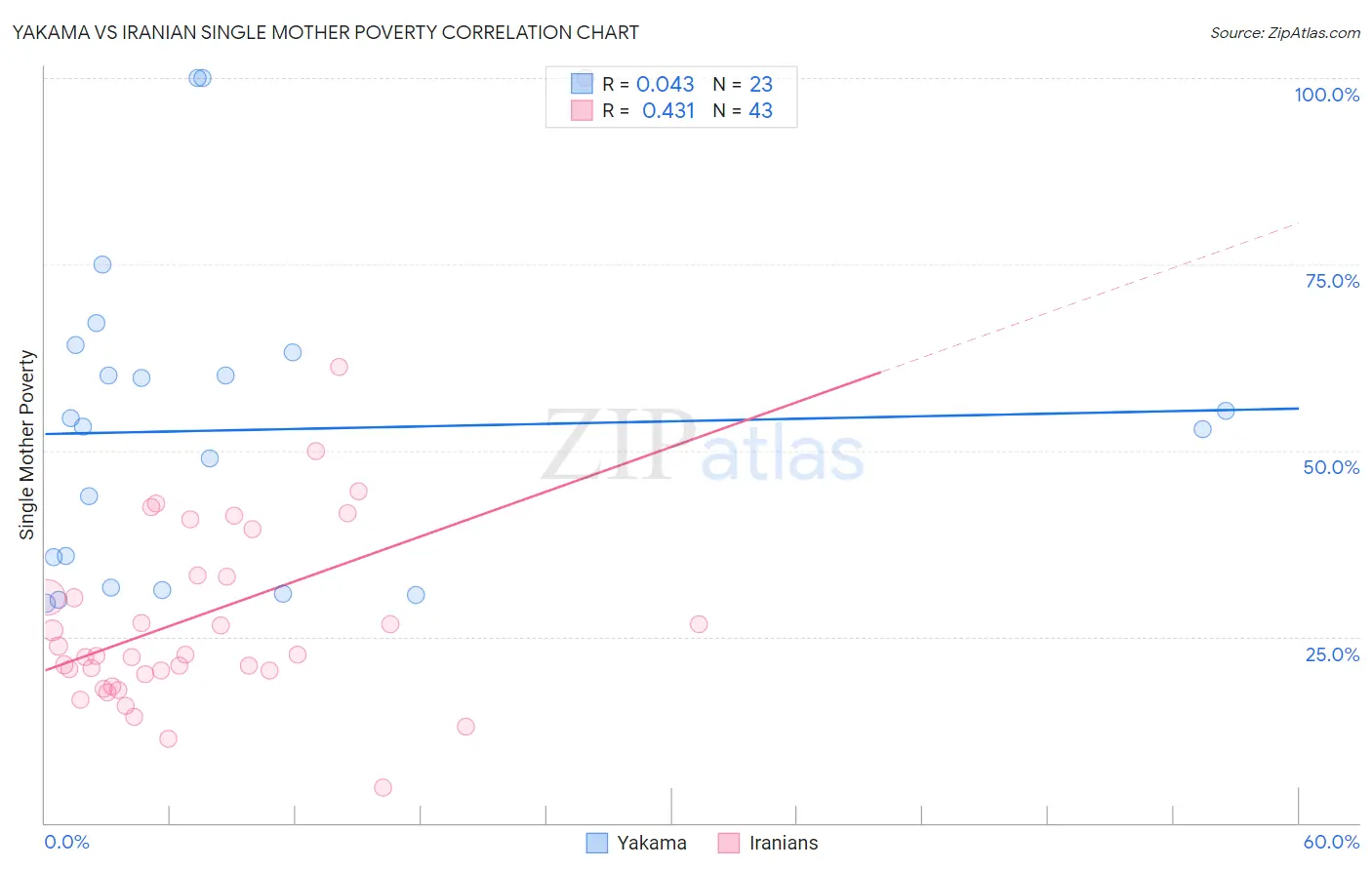 Yakama vs Iranian Single Mother Poverty Correlation Chart