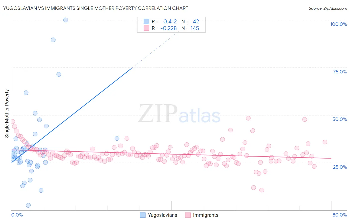 Yugoslavian vs Immigrants Single Mother Poverty Correlation Chart