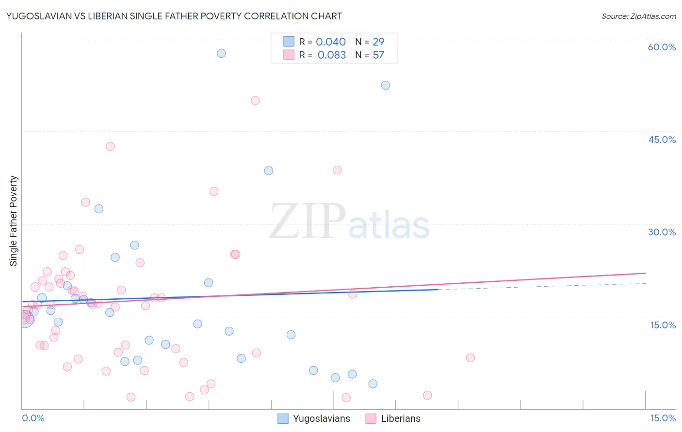 Yugoslavian vs Liberian Single Father Poverty Correlation Chart