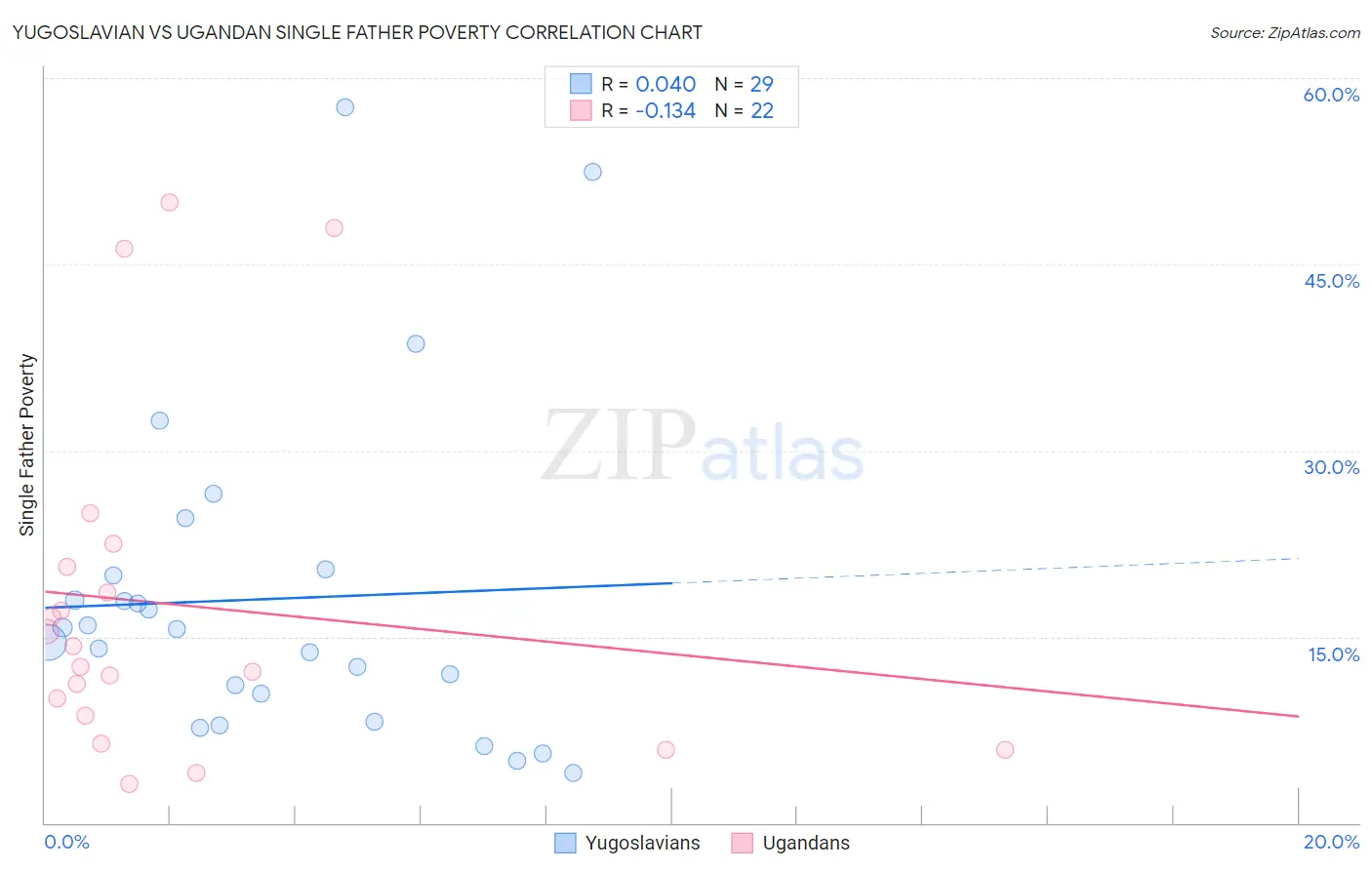 Yugoslavian vs Ugandan Single Father Poverty Correlation Chart