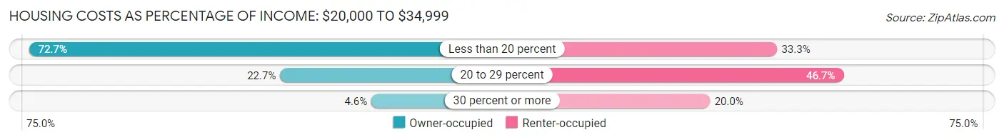 | $30,000 to $34,999 | 1 (0.4%) | 14 (6.4%) |