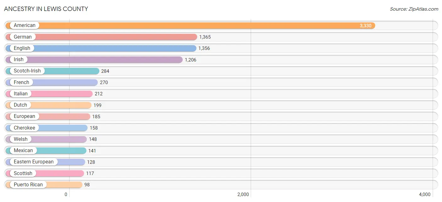 Per Capita Income in Lewis County is $26,873, while median incomes of families and households are $61,994 and $44,613 respectively.