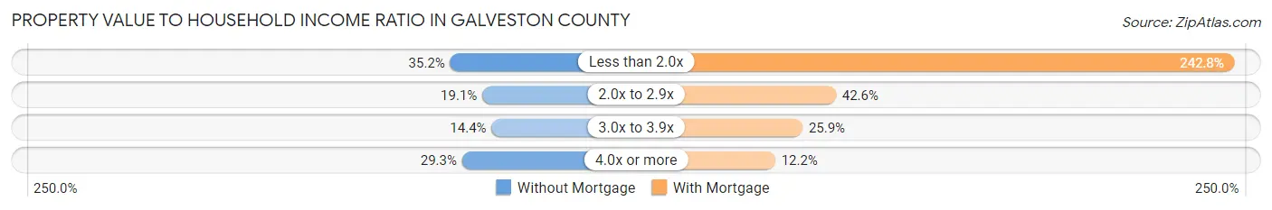 Income or Wage Gap in Galveston County is 34.9%.
