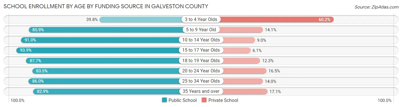 Average earnings in Galveston County are $67,209 for men and $44,877 for women, a difference of 33.2%. Men with an educational attainment of graduate degree enjoy the highest average annual earnings of $108,403, while those with less than high school education earn the least with $40,120. Women with an educational attainment of graduate degree earn the most with the average annual earnings of $74,859, while those with less than high school education have the smallest earnings of $19,382.