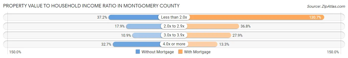 As of the 2010 census, Montgomery County had a population of 455,746. The population is made up of a diverse mix of ethnicities, including White (71.2%), Hispanic or Latino (17.3%), African American (7.7%), and Asian (2.7%). The median household income in the county is $68,845, and the median home value is $179,400.