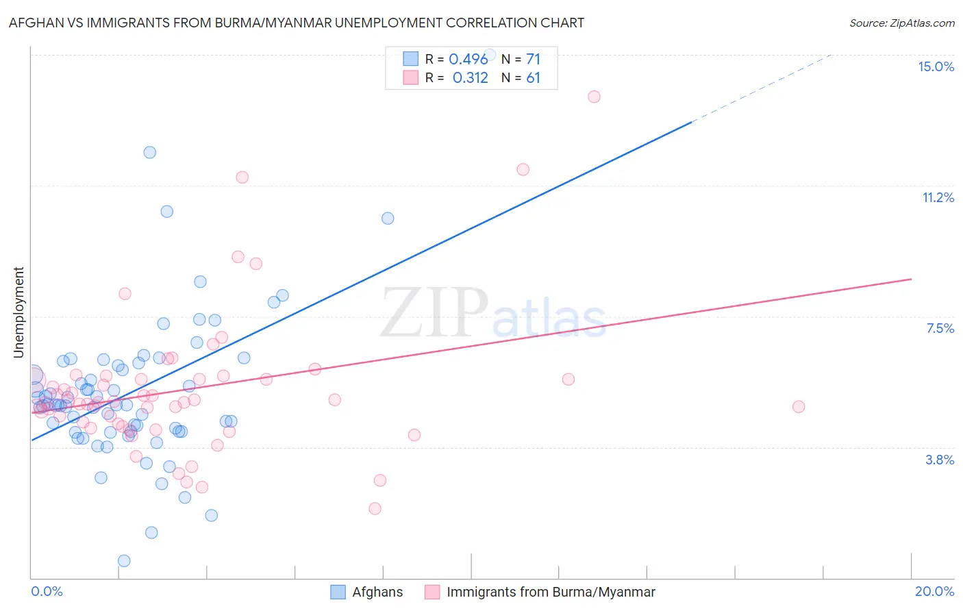Afghan vs Immigrants from Burma/Myanmar Unemployment Correlation Chart