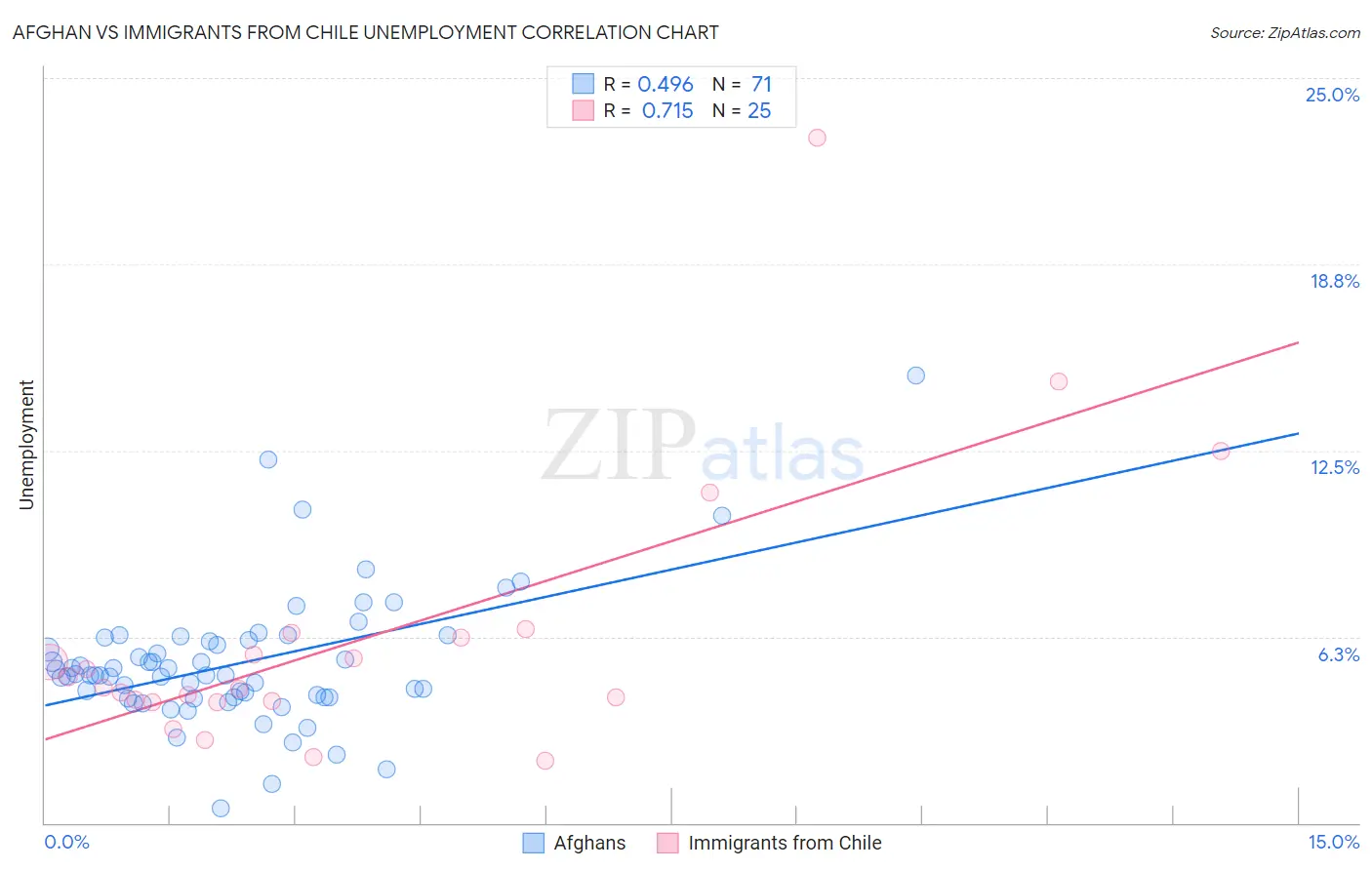 Afghan vs Immigrants from Chile Unemployment Correlation Chart