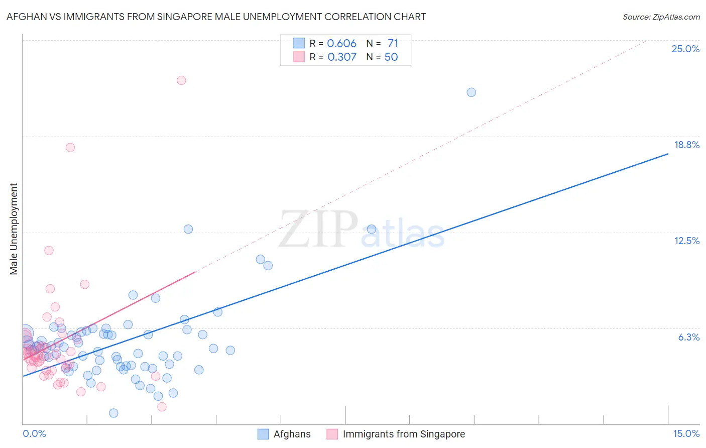 Afghan vs Immigrants from Singapore Male Unemployment Correlation Chart