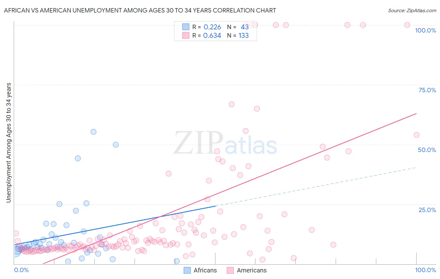 Demographics Similar to Africans and Americans by Unemployment Among Ages 30 to 34 years