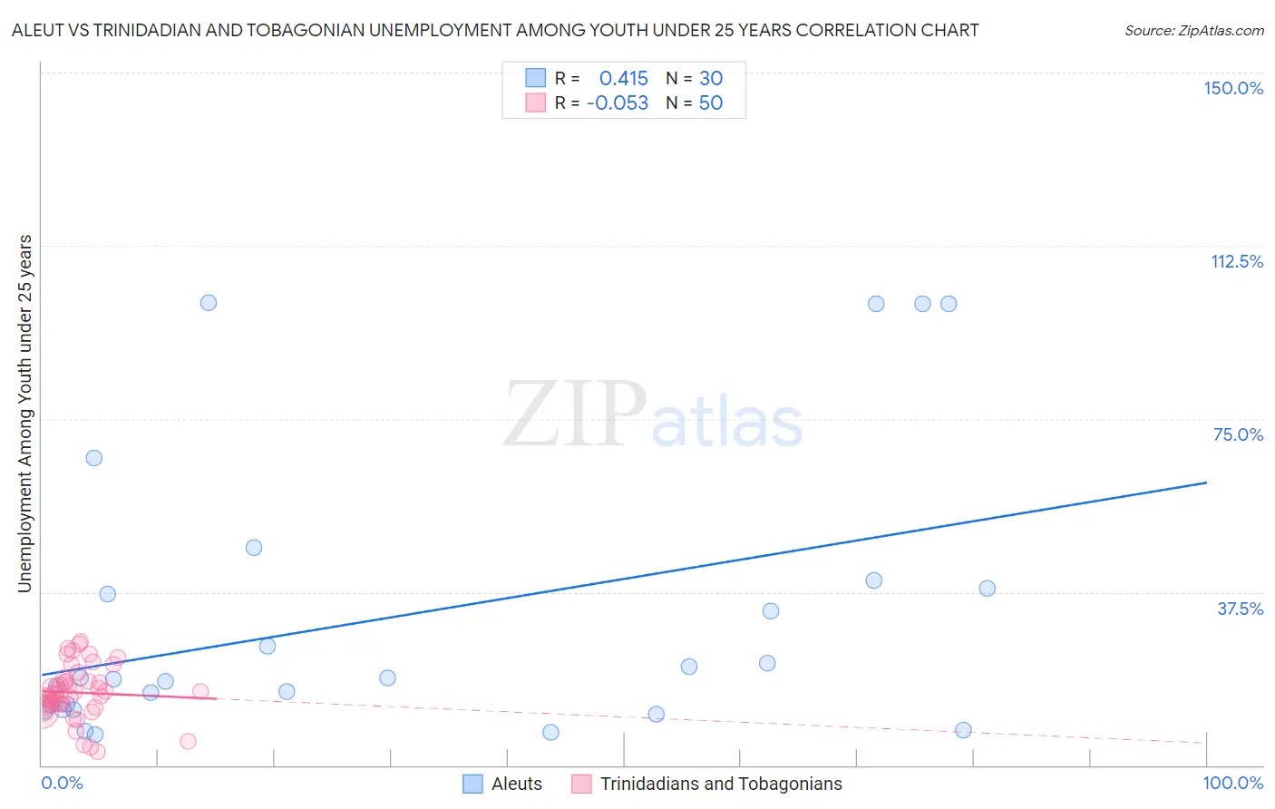 Aleut vs Trinidadian and Tobagonian Unemployment Among Youth under 25 years Correlation Chart